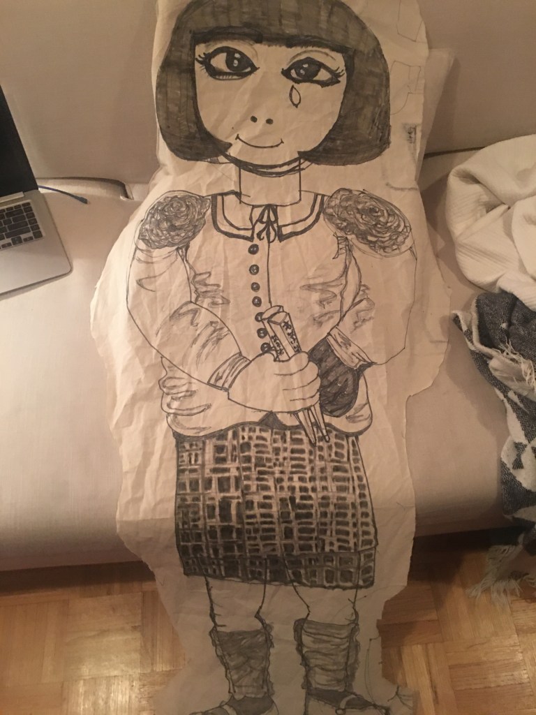 I started drawing an extra large doll of Natsumi. Shes life sized and missing a hand. Tomm I embroider her and stuff her. Dear old friend! ( I’m not losing my marbles I swear)