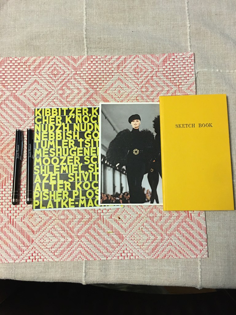 Right now admission is FREE. I went on a Friday afternoon and my friend and I were the only people other than a mom barreling through the galleries with her wailing baby in a stroller. Best part was the exhibit of the permanent collection of the museum, which had some fun paintings of iconic famous people, an Alex Katz painting on metal which seemed novel to me, a pop art painting of some lovable Yiddish words as pictured in the postcard above and modern sculptures that would make it enjoyable for some kids. (There’s also an exhibit about artists and social justice that was mildly enjoyable but not so memorable.) Bonus points for the gift shop that has some unique, quality merch and best of all gives away free little “touch sticks”for want of a better word as pictured above in the photo.. Now I can touch elevator buttons, ATM screens and credit card machines with sheer abandon (or at least can give these chapped hands a small reprieve from incessant Putell). I asked the kind ladies of the gift shop and they let me take four of these marvels for my entire family. What mazel!