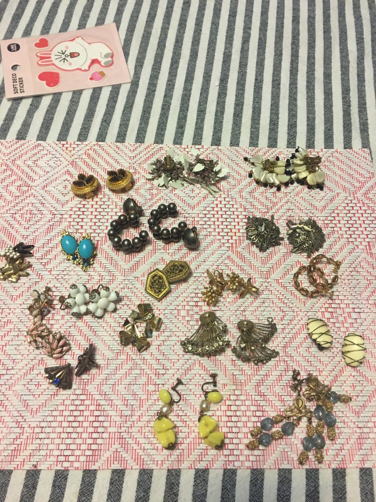 So what if I derive real joy from collecting drawing journals and vintage clip on earrings? (See my photos below of some favorites). Judge me all you want, each journal has potential for me to write new stories and draw my heart out. Each pair of vintage clip on earrings, in my mind, transforms me to someone more storied and eccentric than I am. Sorry Marie, the hunt for these treasures at flea markets, museums, stationary stores definitely “spark joy.” As for my husband, he unwinds by listening to his record collection; the pursuit of records has given us an off-the-beaten-path purpose when we travel (e.g., finding an obscure record shop in Tokyo once lead to some winsome tales). Ladies and gentleman of my imagined jury, I challenge you to find frivolity watching this dear, hard-working man clean his vinyl with a soft cloth, tenderly encasing each in a paper sleeve and then carefully marking down when and where he found each record.