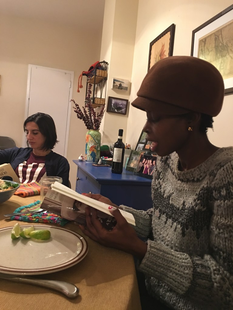 None of us really know plays so it’s a dartboard-style selection process. So far we have read A Long Days Journey Into Night, Angels in America, The Glass Menagerie, August Osage County, Who’s Afraid of Virginia Woolf, Fefu and Her Friends and others as we argued about race, class and everything in between over Korean wings, wine or other fare. It’s difficult to divine which guest will be a natural thespien and which one will read their lines like me, rushed and self-conscious. One regular who is a former district attorney is a wonderful performer with an entertaining knack for accents and hyperbole. She really hits her stride the nuttier a character is.