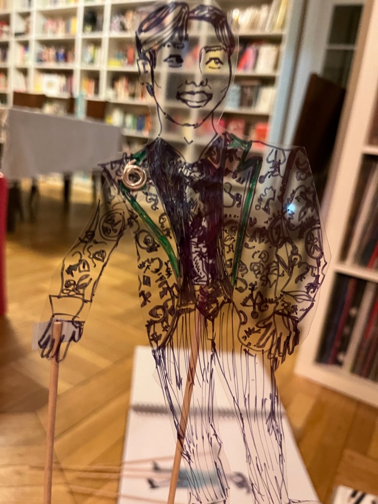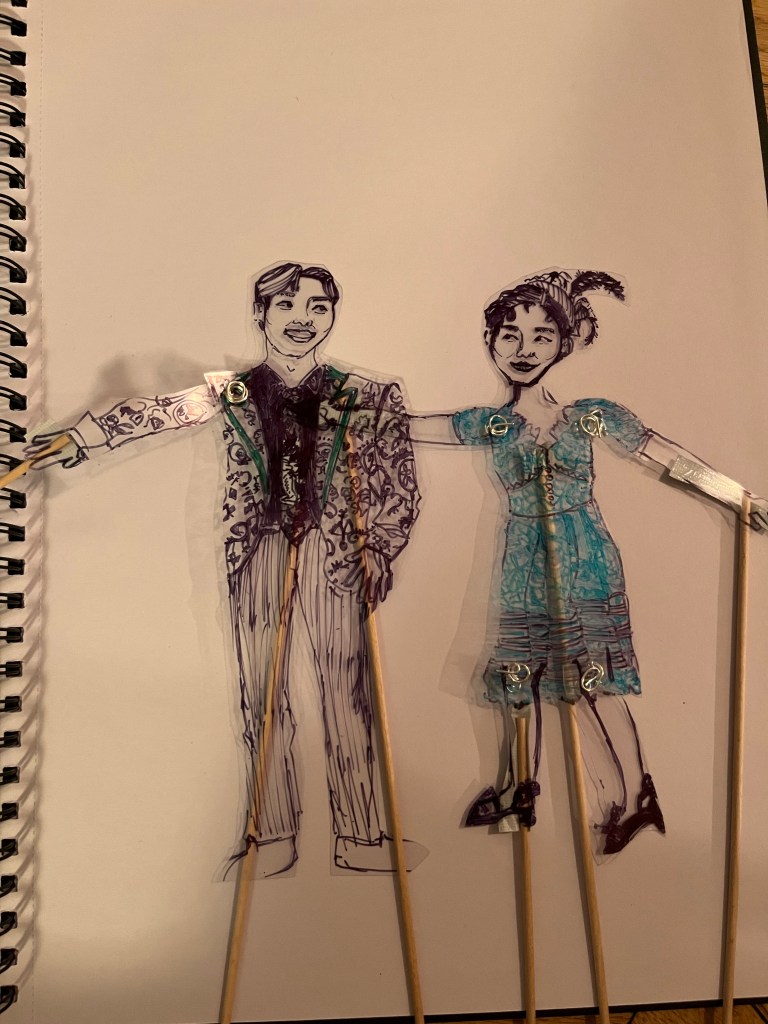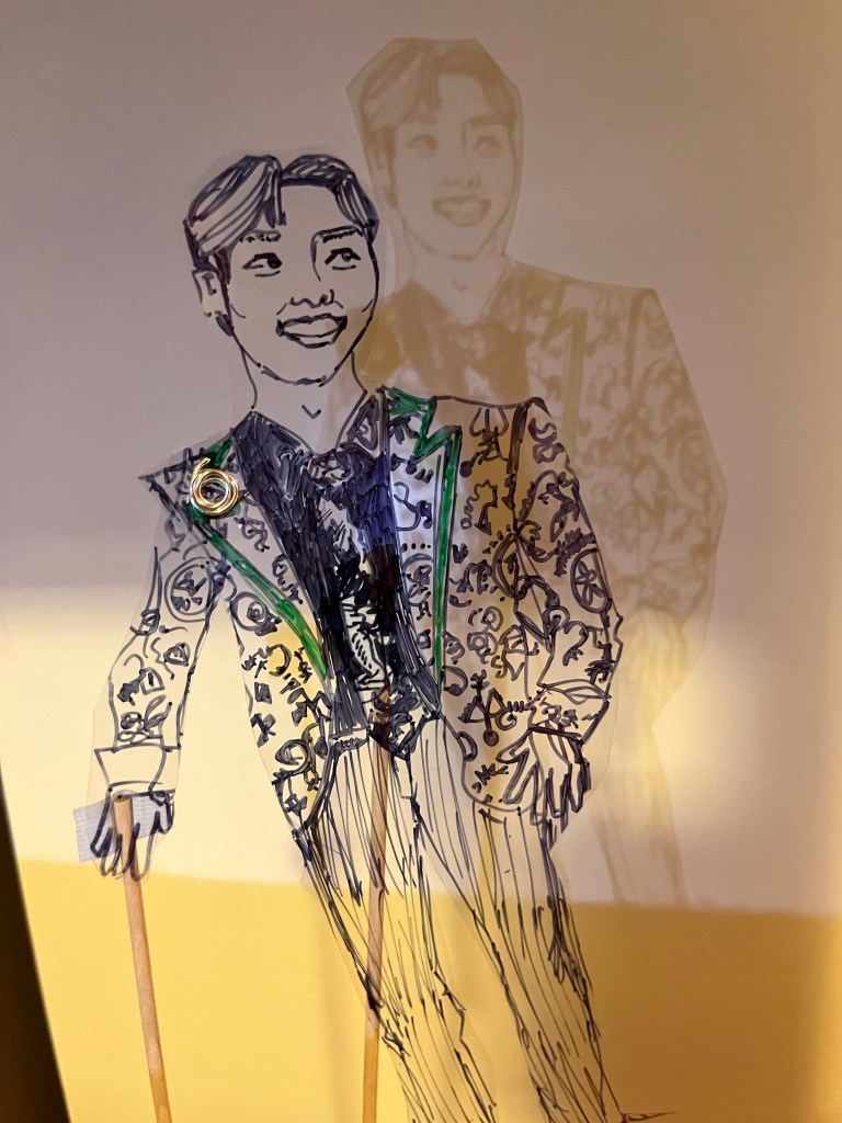 After this exhibit, I of course, had to try to make some plastic shadow puppets with jointed limbs. I would like to make ones with plexi glass like the one pictured above as the thin acetate I used does not look like it will endure.