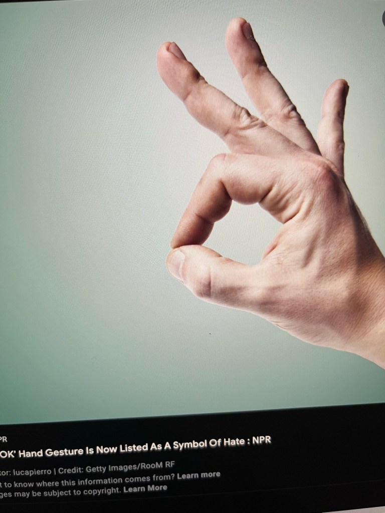 On a very highbrow note, I can’t help but laugh at the similarity between the o.k. symbol that now means white supremacy and the pinching gesture that now means small penis size in Korea. Do the white supremacists know how similar their gesture is to the one for a small penis?