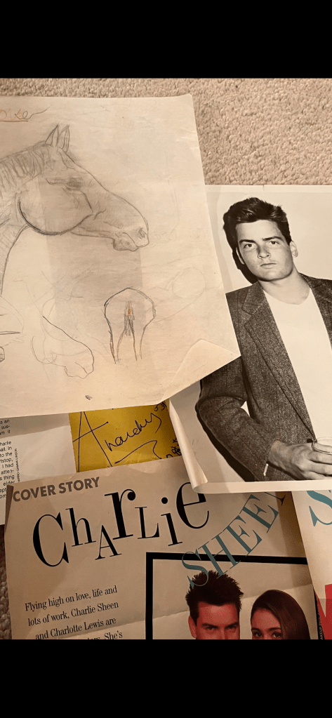 Your Charlie Sheen articles side by side with your horse drawings are poetic majesty. I know he’s an exotic bird to you with a great head of hair and pouty lips–total crush fodder. (But he may not be the type to age well despite his “tiger blood,” (a reference you do not yet understand but someday will)). But taking mom’s money to buy the same movie tickets on repeat is foolery. You are, face it, a G-L-U-T-T-O-N. I’ll grant you one showing of Platoon and maybe Wall Street, but there’s no girth for Three for the Road and Lucus–his lesser known oeuvre. These are nothing but soft-core porn–artless. Remember how mom used to buy non-clearance rack Ferragamo pumps before she adopted you–the see-through ones that never go out of style – and look at her shoes now. Keds with worn down bottoms. DSW’s last chance items. For shame!
