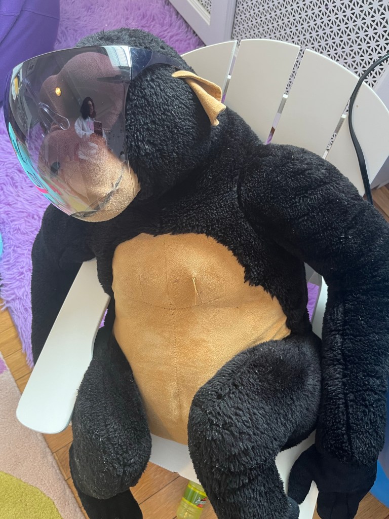 monkey wearing my questionable “COVID prevention sunglasses.”