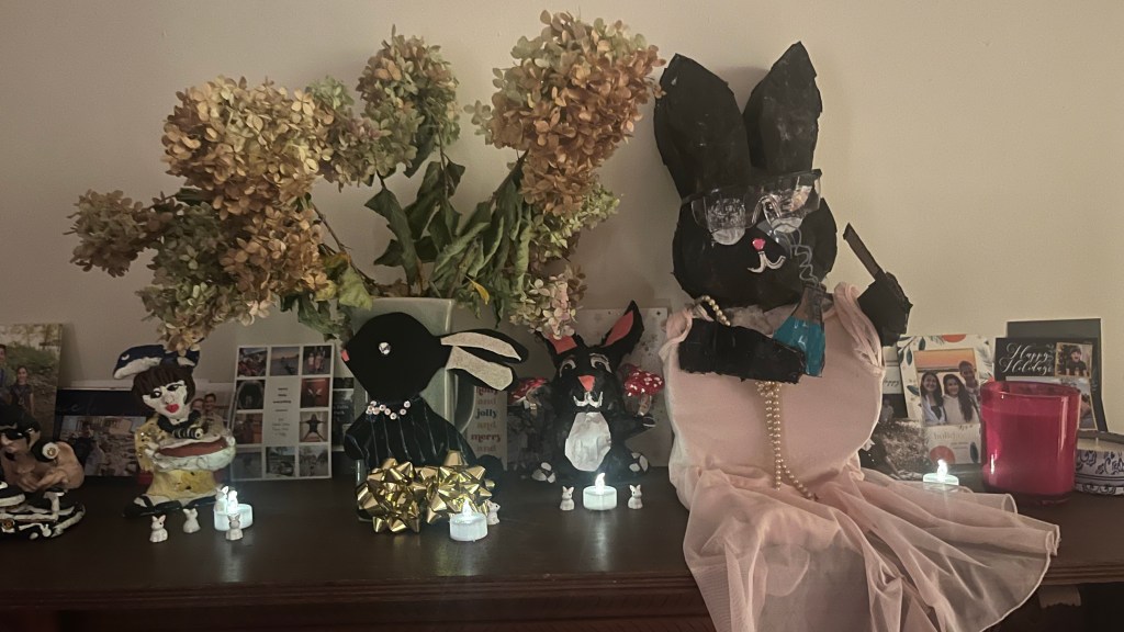 Apparently, one of my wobbly, quickly aborted yoga squats on the carpet pushed you to the brink. Back then, I was still struggling to shed post-partum weight so I should have paused before kneeling on the carpet and then pushing into a low squat–you one of my only anchors. And you’re a pin of a thing! Sure, miraculous sculptures seem to defy natural forces but they are pure artistic illusion. You can’t fight Gravity. (So sorry I forgot that).