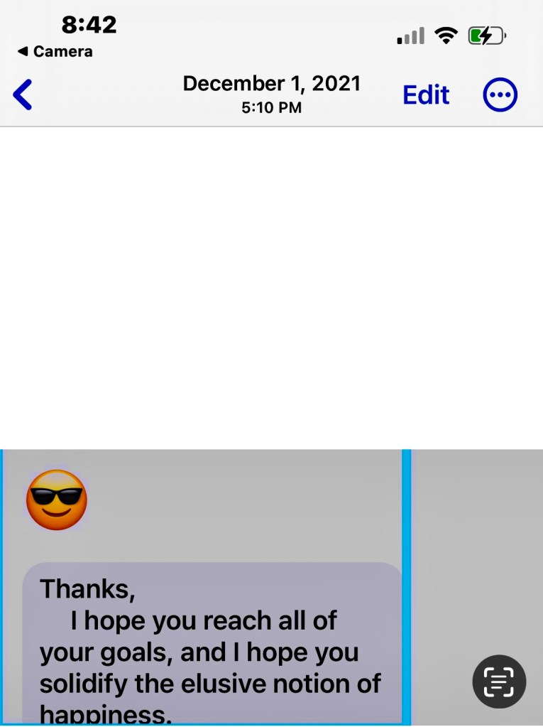 As one of my client’s once texted me after I had helped him with his employment case, “Thanks, I hope you reach all of your goals, and I hope you solidify the elusive notion of happiness.” I loved that. (See below screen shot of the text I saved minus my client’s name).