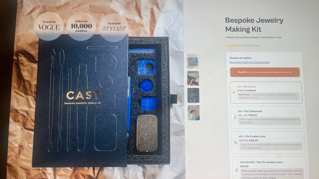 Most jewelry-making kits I’ve seen are super lame as in, burn your initials on a dog tag and that’s about all they offer or of course just beads and string. This one is a splurge but it looks like it produces wearable stuff. I feel some serious lust for this set. Gimme.