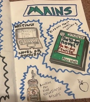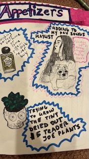 Appetizers are “smaller activities that provide a quick burst of dopamine when you need a little pick-me-up throughout the day. They can be thought of as “micro-moments” of joy that provide swift, easy-to-achieve dopamine boosts.” Examples are hobbies and meeting up briefly with friends/family. (Note, I put my main hobbies— writing and art making/seeing— as Mains because I want them to be significant daily activities that take up large chunks of time.)