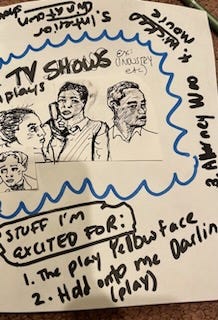 As I strive to flow more consistently, I decided to try this dopamenu strategy. (See below images for my quickly done dopamenu). You don’t have to draw images on your Menu as I have but it makes it fun for those who like to draw. (The examples I’ve seen online are mostly just words written in fun colored markers).